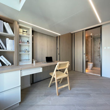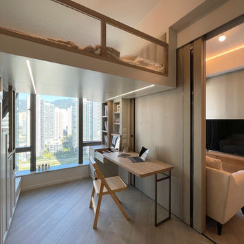 A seamless blend of functionality and style defines this studio flat, where living, dining, and sleeping areas flow effortlessly together. Light finishes enhance the sense of openness, while integrated shelving and custom storage solutions optimize space without sacrificing aesthetics. A well-placed wine rack introduces a refined touch, merging practicality with sophistication. Soft neutrals and natural materials create warmth, while smart layout planning ensures both comfort and efficiency. Thoughtfully curated lighting and space-saving built-ins enhance the ambiance, transforming the studio into a harmonious retreat that feels spacious, inviting, and perfectly suited for modern living.